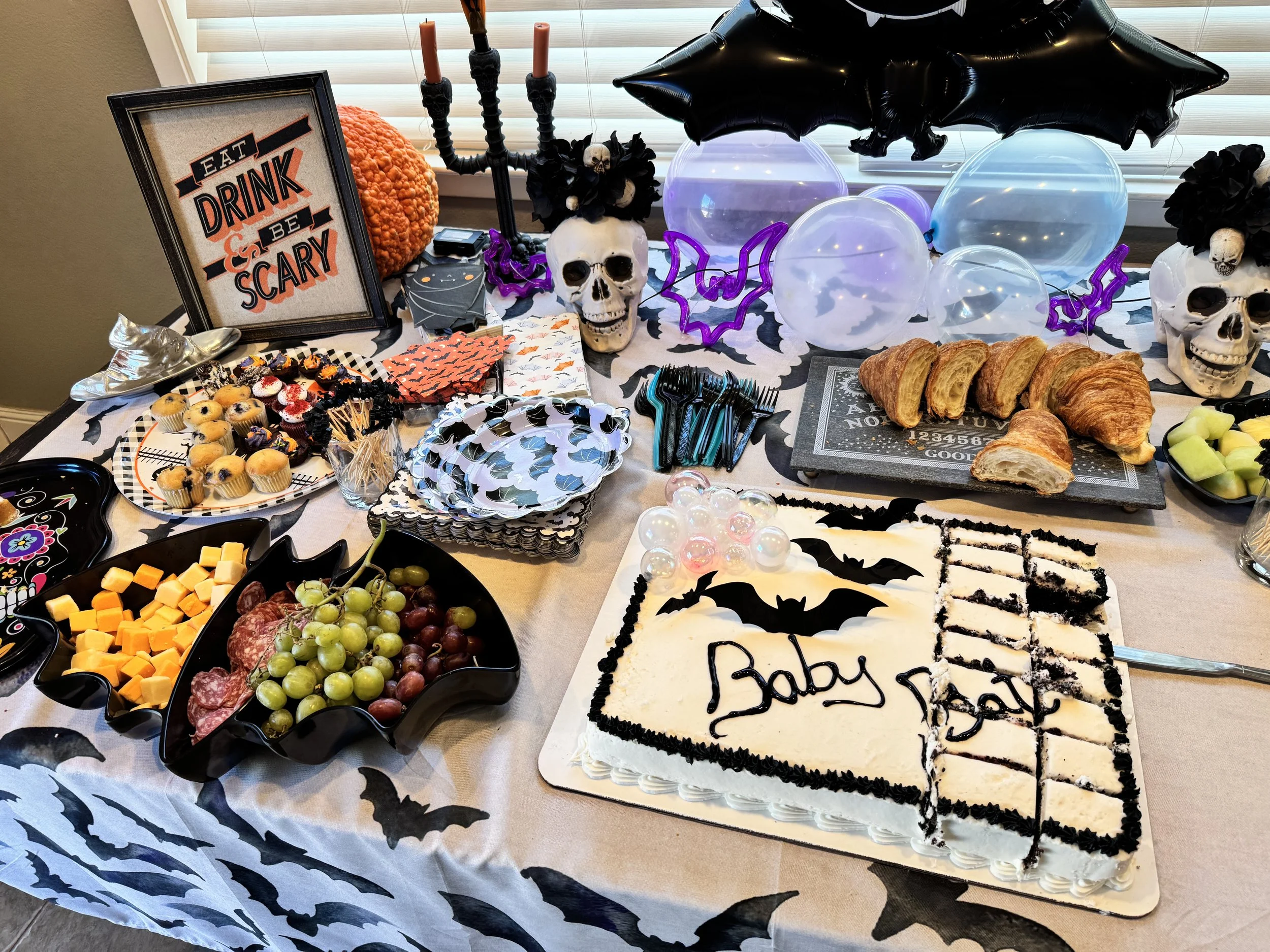 My baby shower theme, officially, was Bats and Bubbles, but I leaned heavily into the bats. The shower was held mid-october so I wanted it to be spooky themed, but also something that seemed suitable for, well